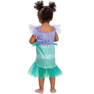 Baby Ariel Costume - Disney Princesses. Ariel Costumes provide a creative outlet for Childrens playtime and may even be educational as they explore the wonders of the sea. This sweet purple and teal dress is paired with a matching headband and tights and features a cameo of Ariel on the chest making it perfect for your adorable mermaid.
