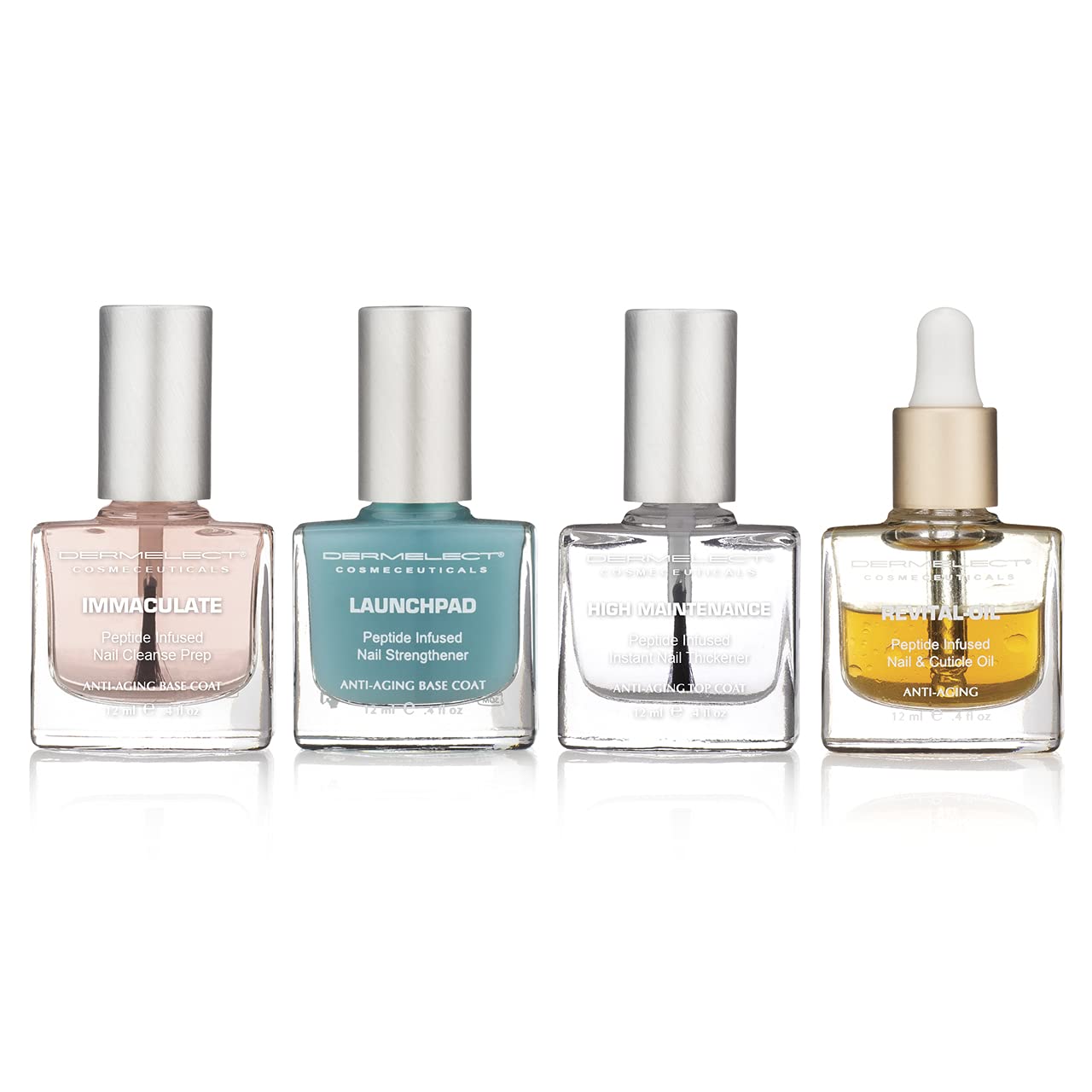 Full Size Products- 7000 if sold separately value STEP-BY-STEP REGIMEN. Dermelect Also has these Color treated And Infused high gloss nail polish assortment that is long lasting and chip resistant. If youre eyeing dermelects nail recovery products get the whole set.